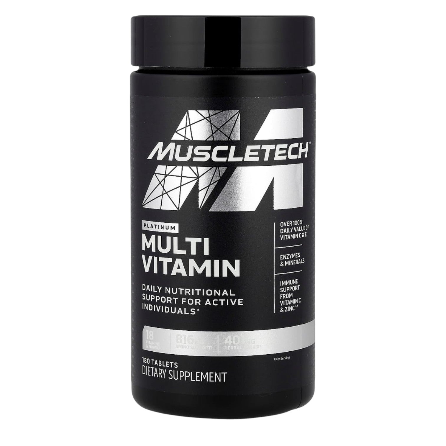 • Meta Description: Shop the Muscletech Platinum Multi Vitamin for active individuals. Features 18 vitamins, high-potency Vitamin C & E, Amino Support, and Zinc for immune health. 180 tablets.